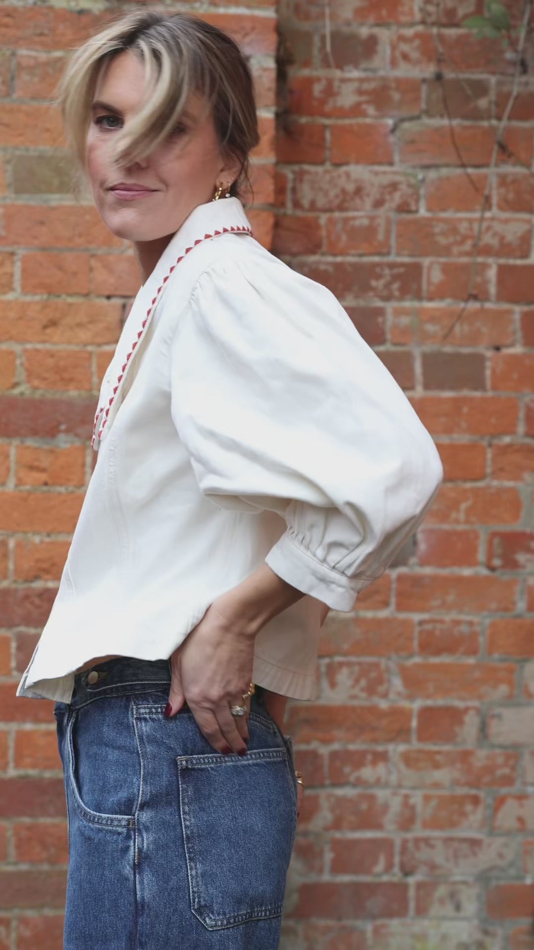 Talia Collared Denim Top in Ecru