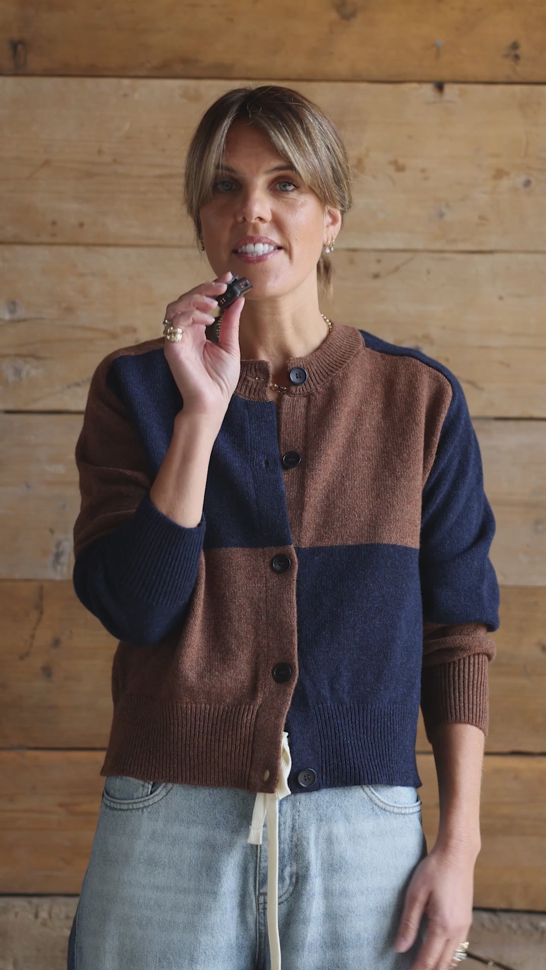 Check Cardigan - Suede