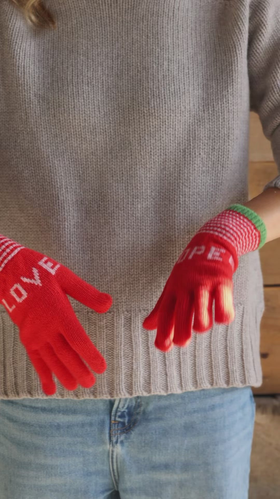 Love and Hope Gloves in Classic Red With Green Cuff Stripe