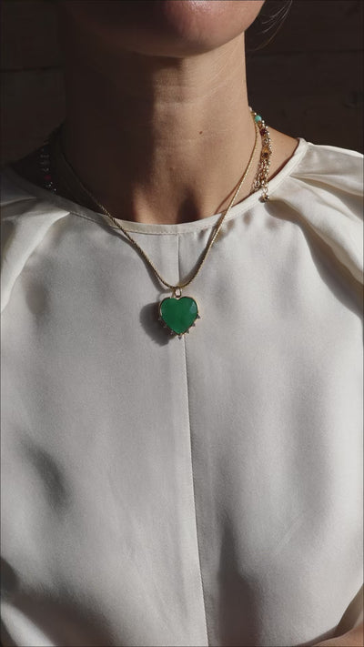 Zenu Emerald and Diamond Heart Charm - Large